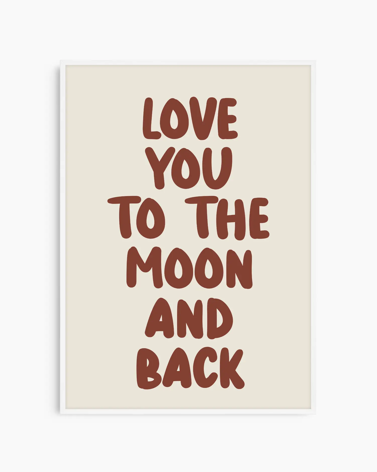 Celebrate the endless love between you and your little one with this timeless wall print featuring the beloved phrase “Love You to the Moon and Back.” A sweet and heartfelt reminder of just how big love can be — perfect for nurseries, kids’ rooms, and cozy family spaces.